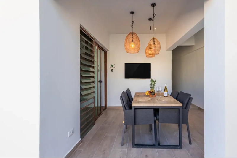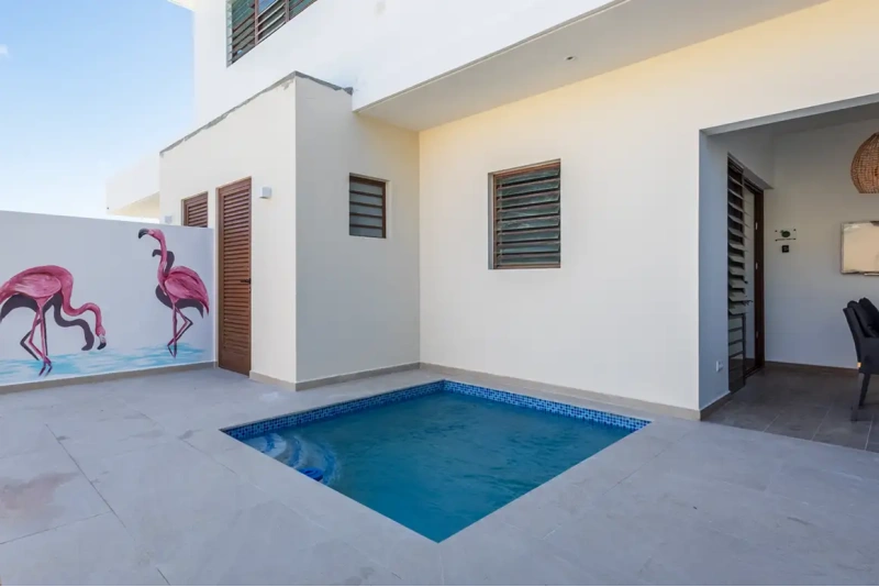 • Heerlijk buitenleven – Geniet op het sfeervolle terras met comfortabele zitjes of ontspan aan het privézwembad met luxe ligbedden.